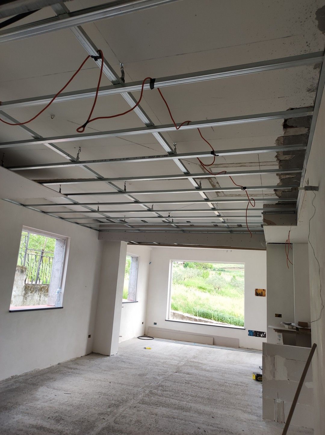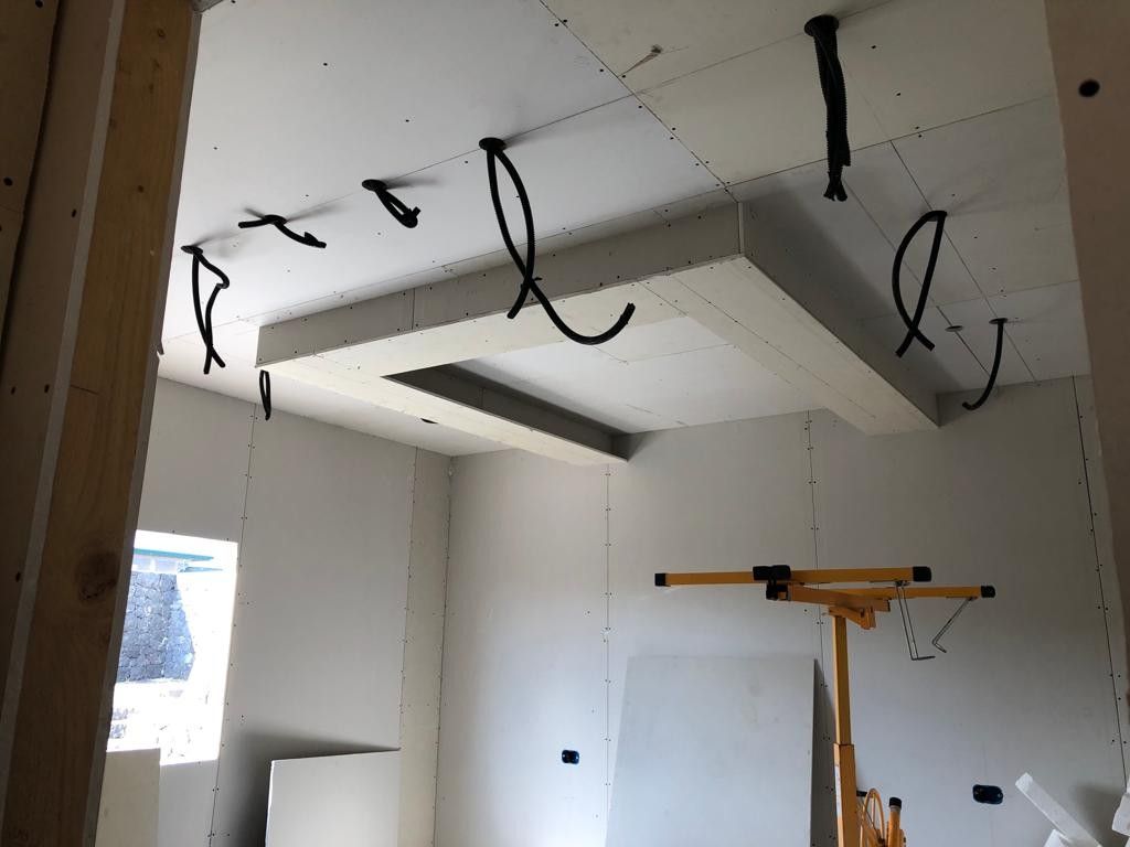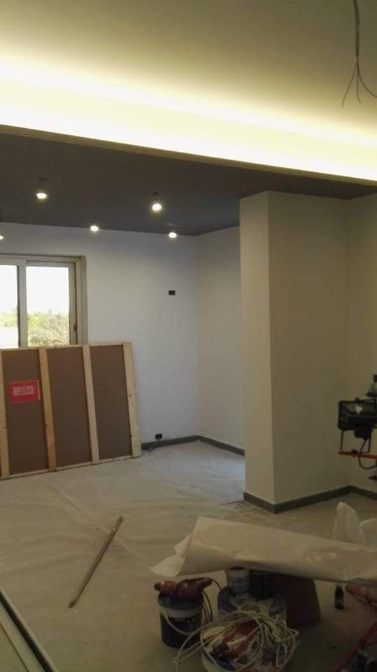 Ideali per suddividere gli spazi interni in modo intelligente, le pareti in cartongesso consentono di isolare acusticamente gli ambienti e di integrare impianti elettrici o idrici in modo discreto. - Controsoffitti